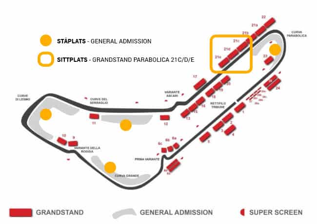 – F1 biljett GRANDSTAND PARABOLICA 21C/D/E: 22990:-